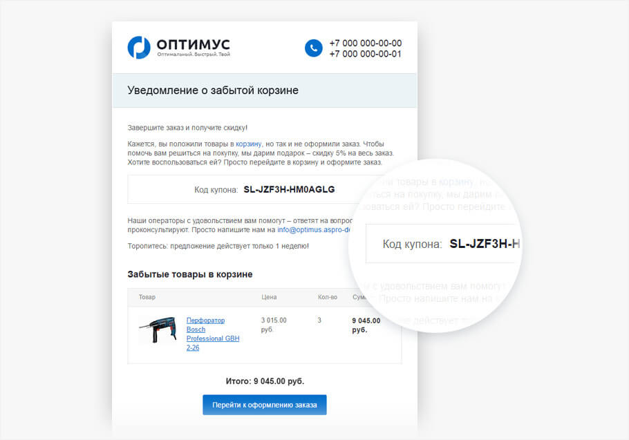 Шаблон письма для забытой корзины
