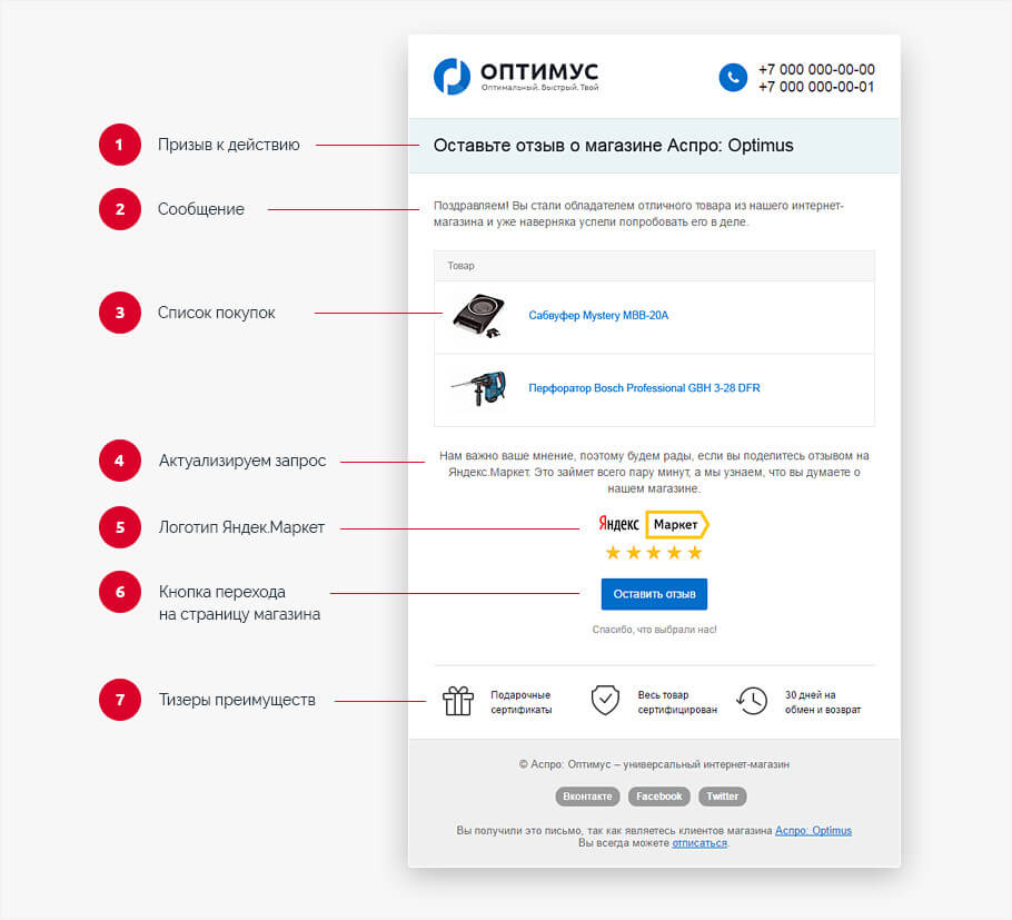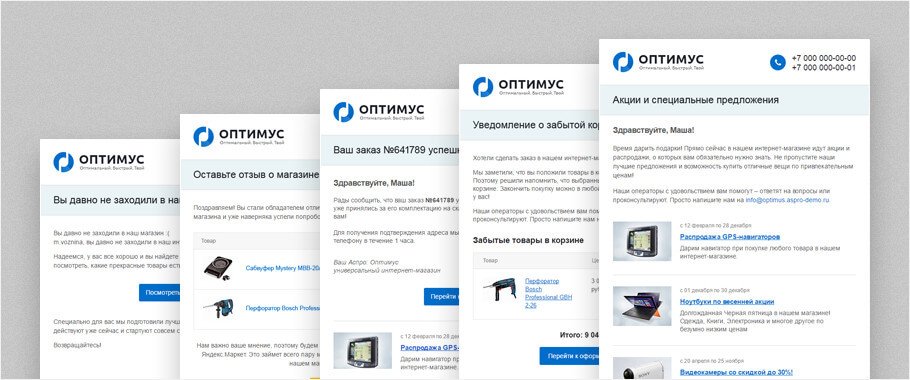 Давайте рассмотрим, как могут выглядеть триггерные письма на примере новых шаблонов Аспро: Маркет и Аспро: Оптимус. На их примере разберем популярные цепочки и узнаем, какой прирост к продажам и конверсии они способны дать.